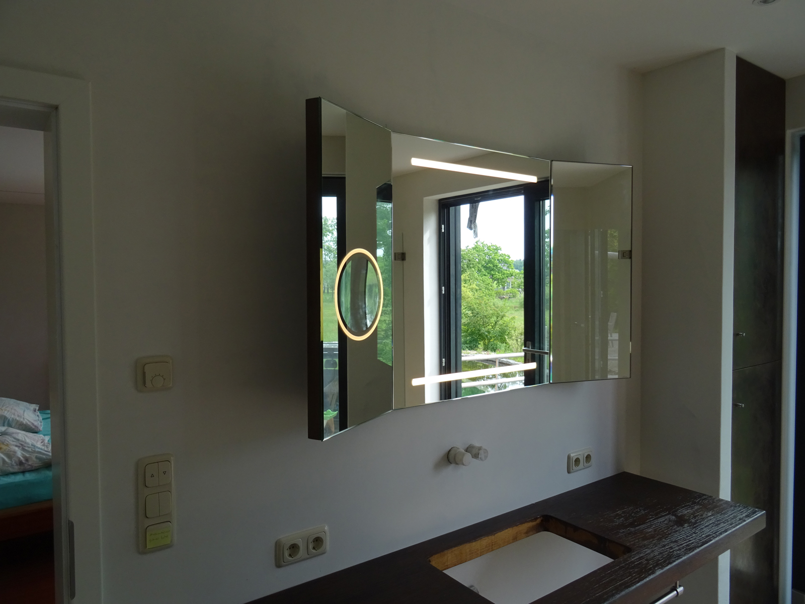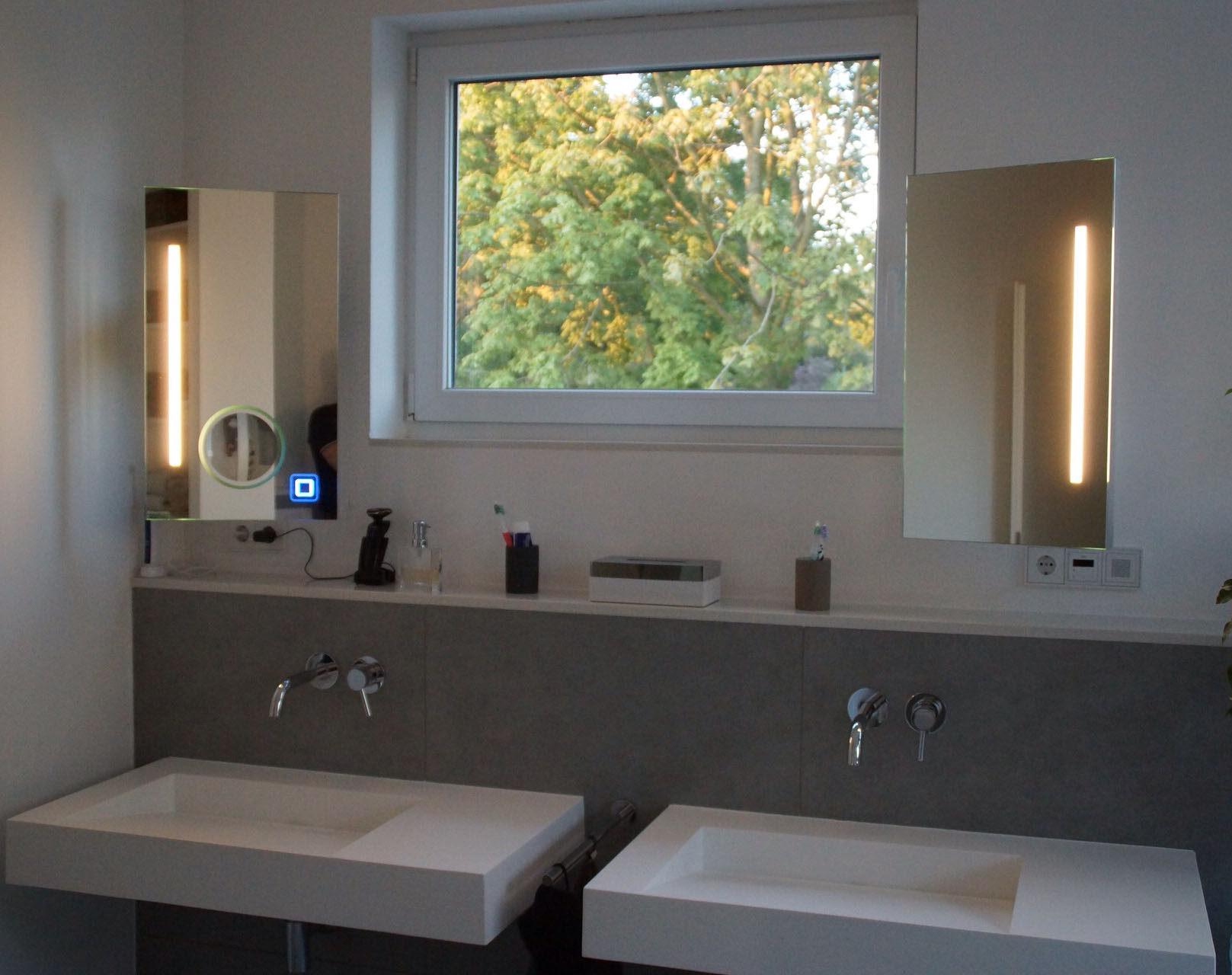 Wichtig ist dass sich keine Gegenstände davor stehen. Für Spiegel mit umlaufender Ambientebeleuchtung ist dieser Sensor weniger geeignet, da für seine Position ein kleiner Bereich der LED-Linie ausgespart werden muss.