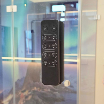 Die Fernbedienung arbeitet kabellos und batteriebetrieben, sodass kein zusätzlicher Anschluss erforderlich ist. Die Befestigung kann flexibel an beliebiger Stelle erfolgen.